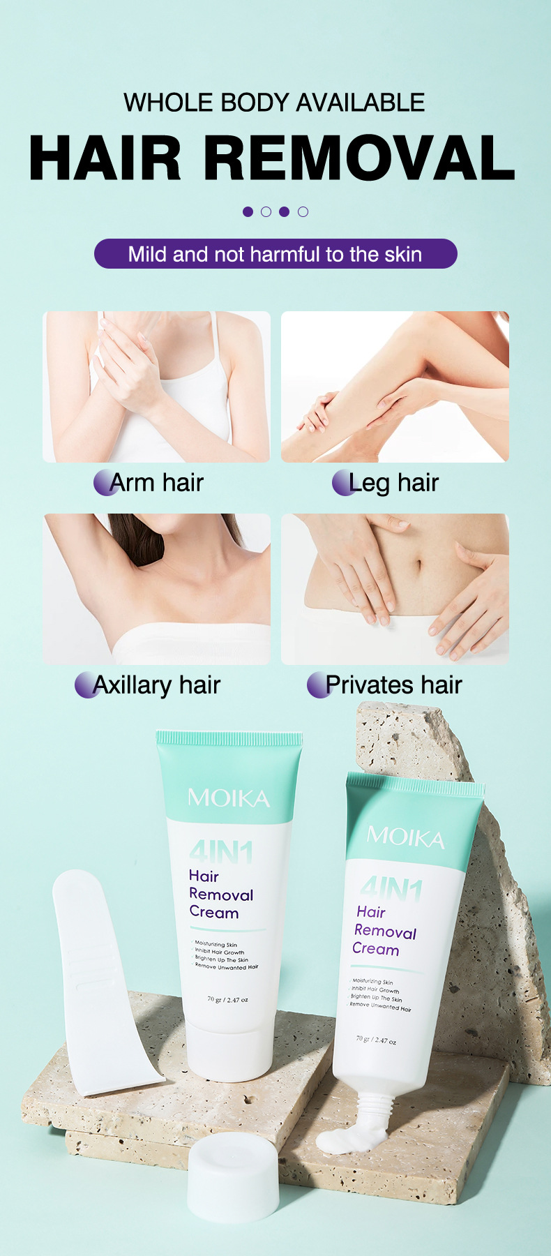 • Hair Removal Cream 70g for Body & Private Areas | Men & Women Full Body, Legs & Underarms